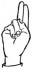 На ћирилици написано МОМЧИЛО АРКУЛА састоји се из 13 слова [?]. Исписано ћириличном једноручном азбуком за глувонеме: